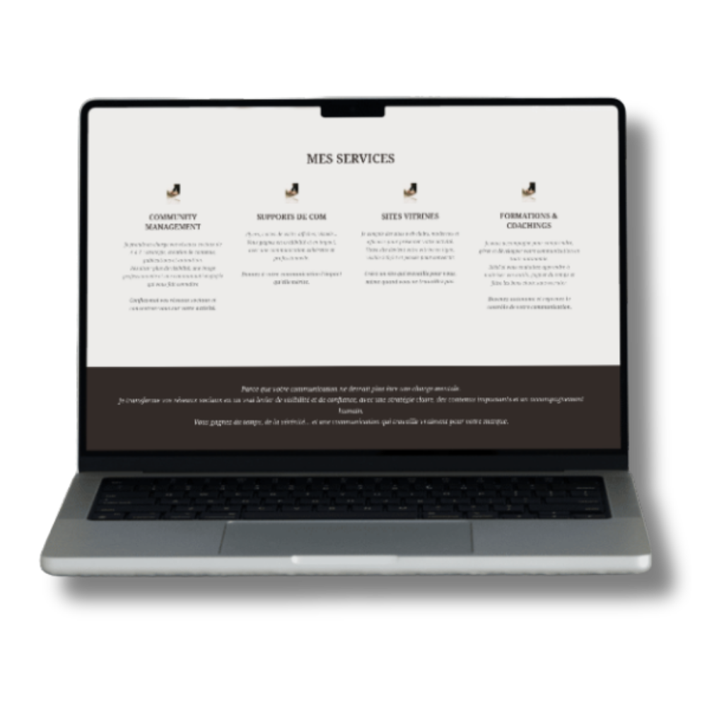 Je transforme vos réseaux sociaux en un vrai levier de visibilité et de confiance, avec une stratégie claire, des contenus impactants et un accompagnement humain.
